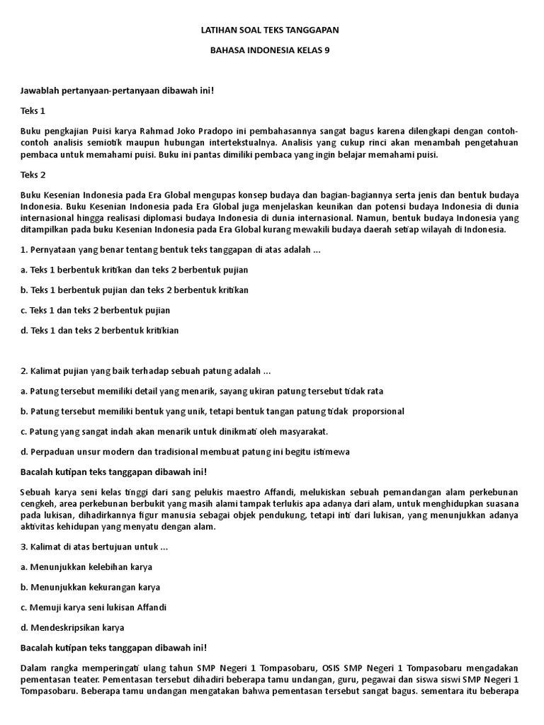 Latihan Soal Teks Tanggapan Kelas 9