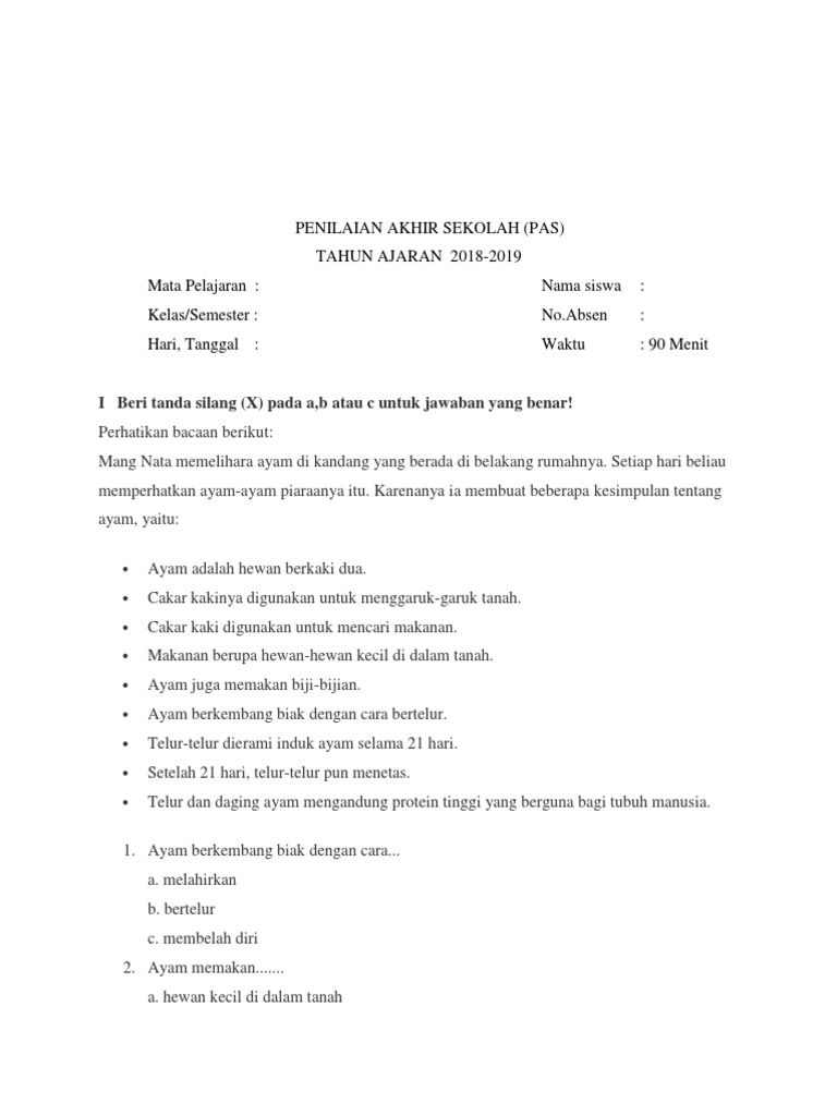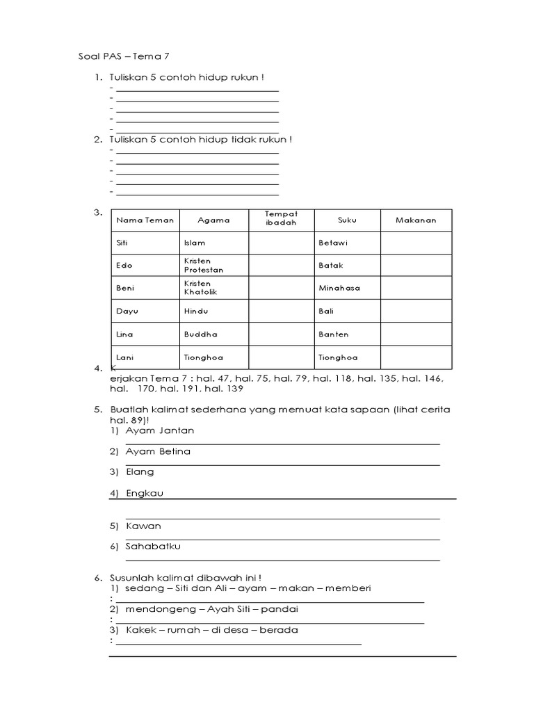 Soal PAS Kelas 2 Tema 7
