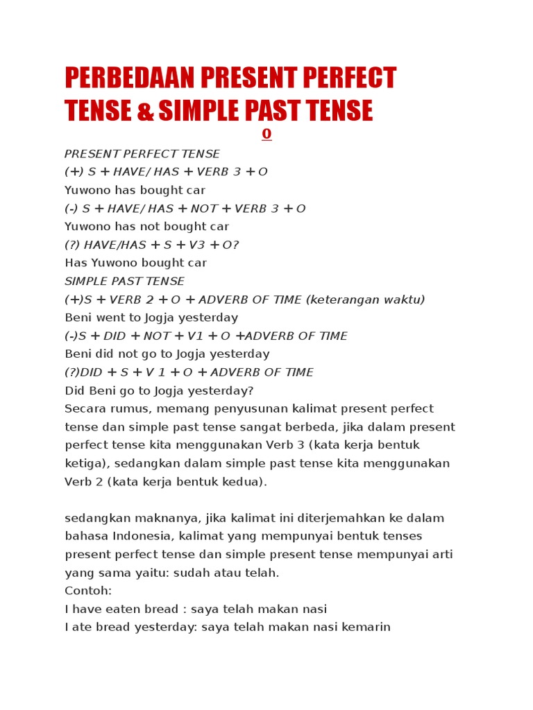 Contoh Kalimat Simple Past Tense Dan Present Perfect Tense