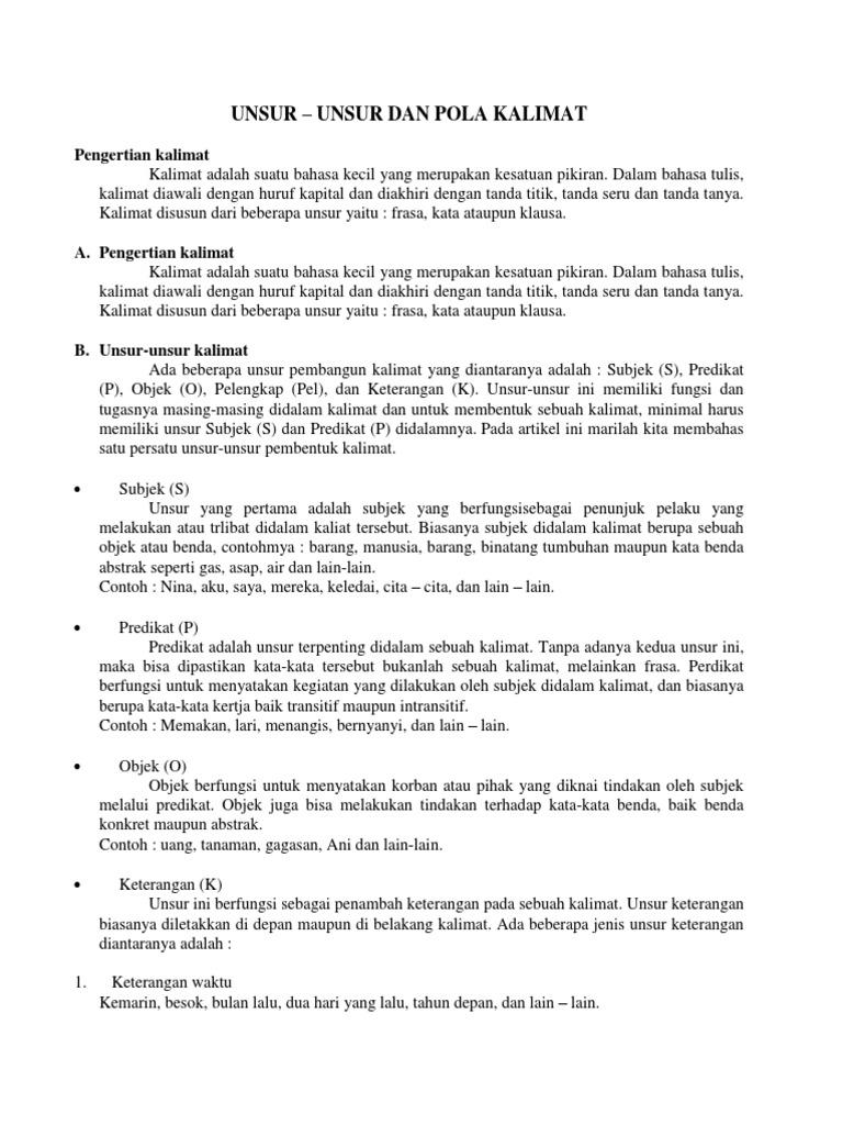 DOC) Definisi dan Contoh Kalimat SPOK | agoes sugie - Academia.edu