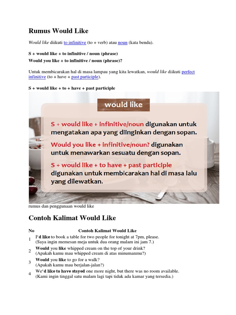 Pengertian Dan Penggunaan Would Like Dalam Bahasa Inggris