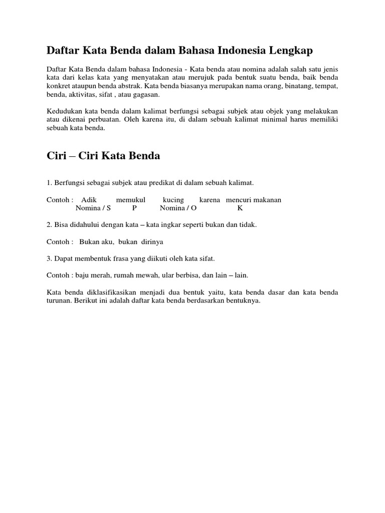 Daftar Kata Benda Dalam Bahasa Indonesia Lengkap