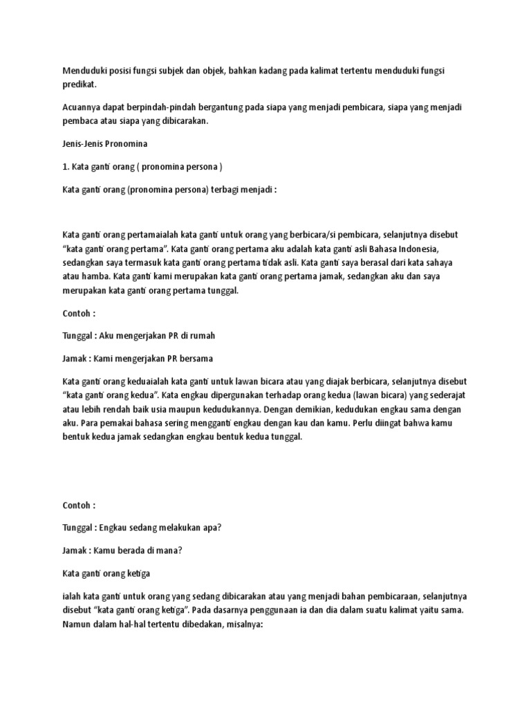 Contoh Kata Ganti Nama Diri | Contoh Soal Dan Materi Pelajaran 7
