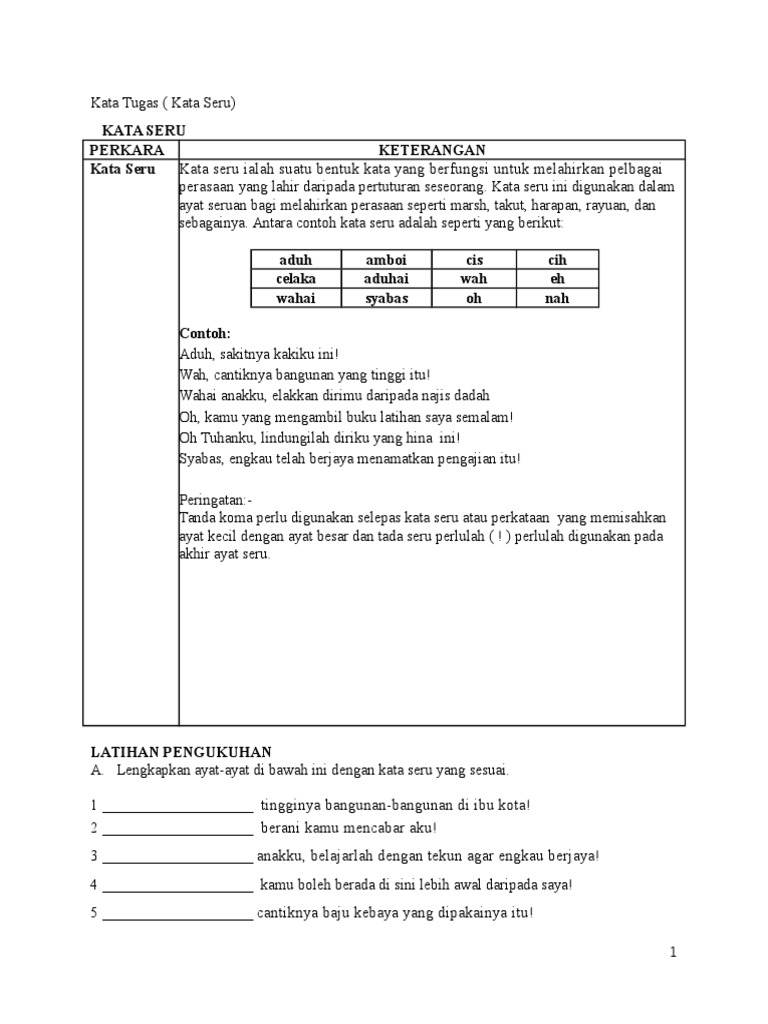 Latihan Pengukuhan - Tatabahasa - Kata Tugas
