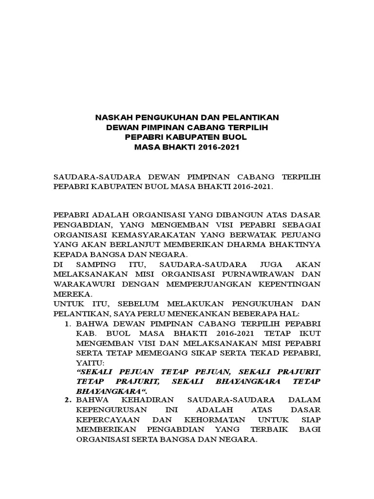 Naskah Pengukuhan Dan Pelatikan Pepabri