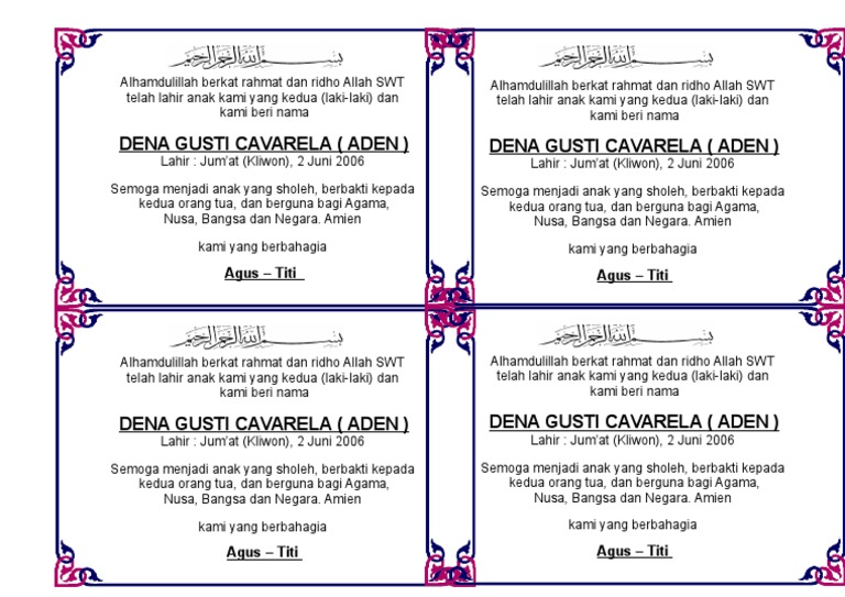 Contoh Kartu Ucapan Aqiqah Anak - Nusagates