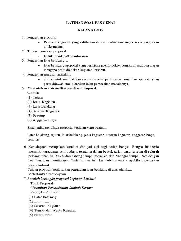 Latihan Soal Pas Genap Kelas Xi 2019: “Pelatihan Pemanfaatan Limbah Kertas”