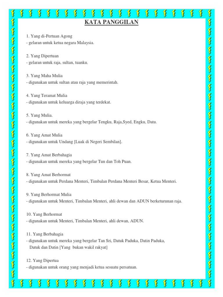 Kata Nama Khas Gelaran Dan Kata Nama Panggilan - Lessons - Tes Teach