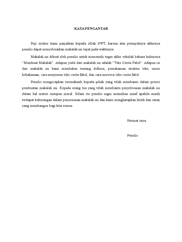 Kata Pengantar Makalah Fabel