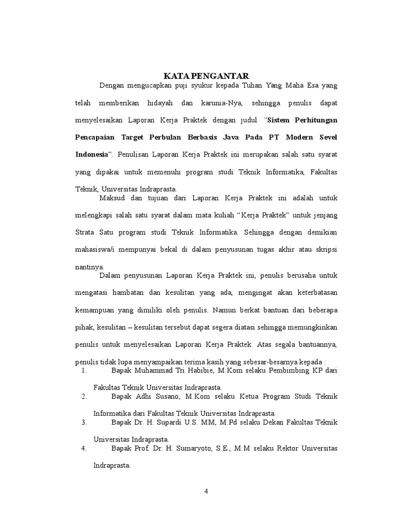 Contoh Kata Pengantar Laporan Kerja Praktek Teknik Informatika - Kumpulan Contoh Laporan