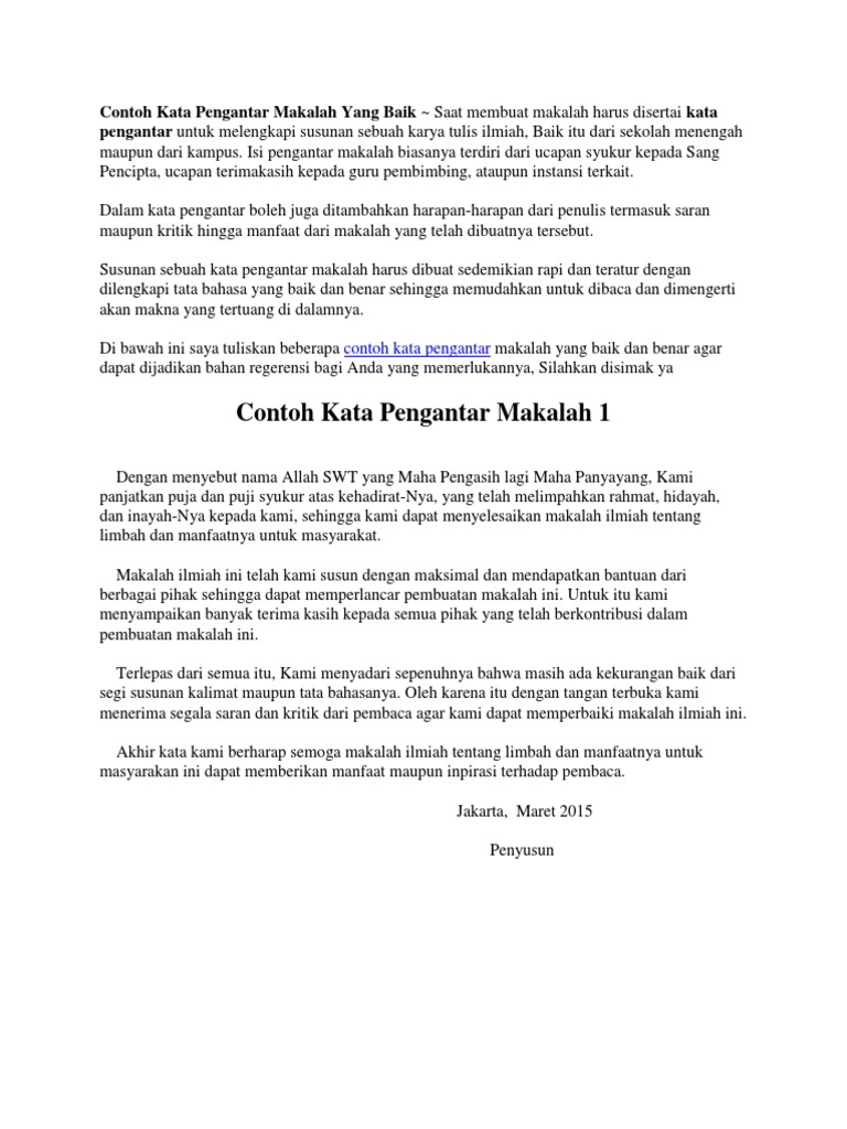PDF) Contoh Kata Pengantar Makalah Terbaik | tommy syatriadi - Academia.edu