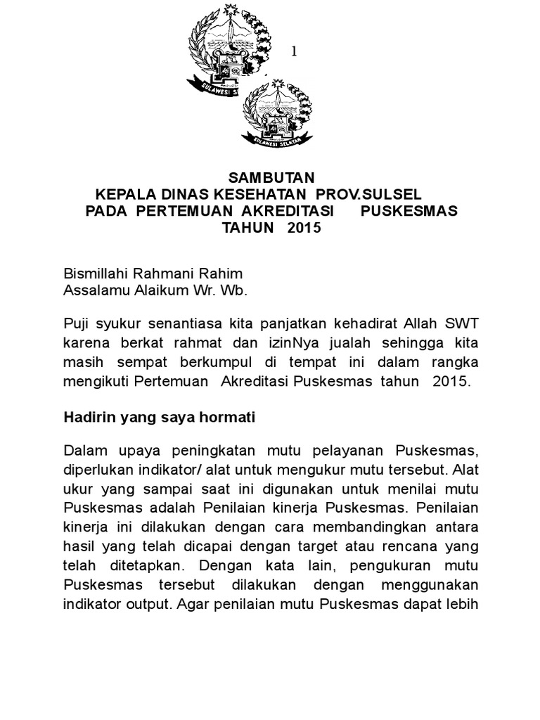 DOC) SAMBUTAN KEPALA DINAS KESEHATAN | halian sabdani - Academia.edu