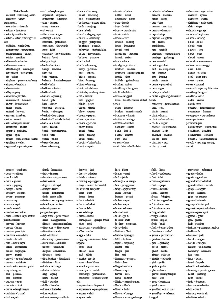 Vocabulary Kata Benda