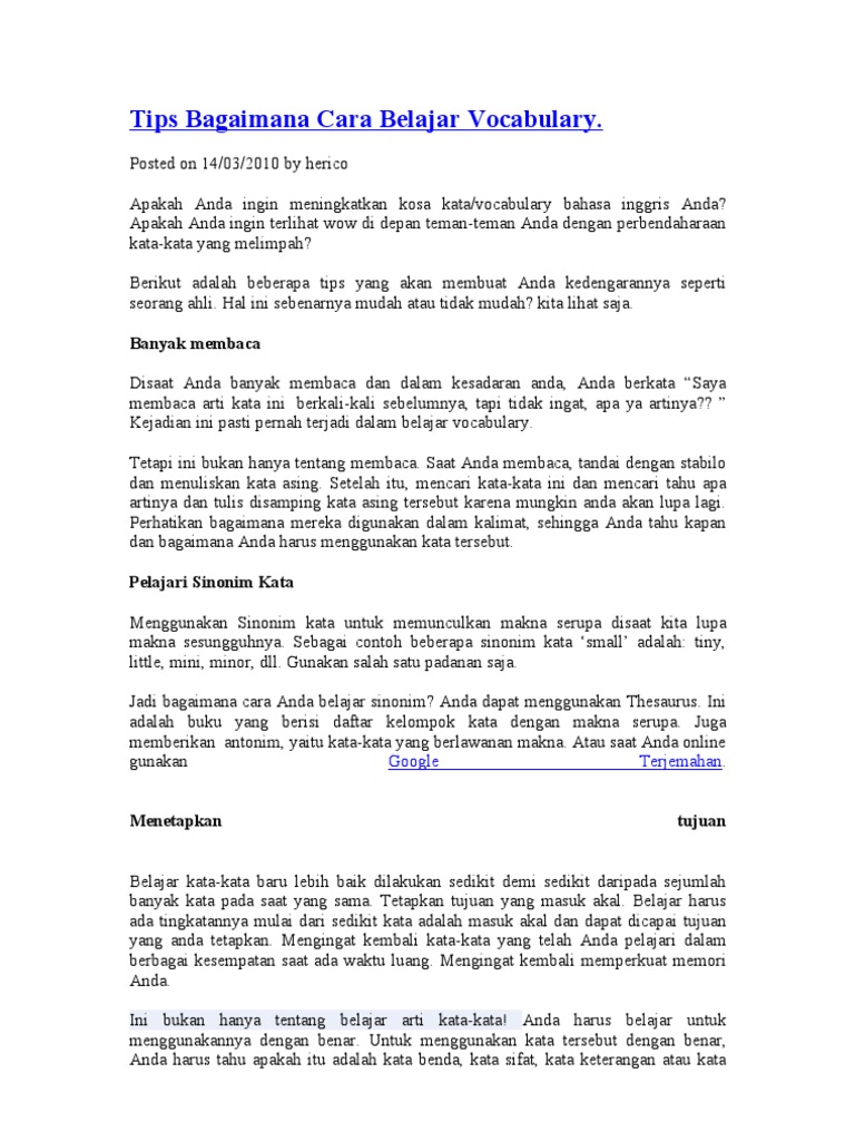 12 Cara Belajar “Memperkaya” Kosa Kata Bahasa Inggris (Vocabulary) Dengan Cepat Dan Mudah