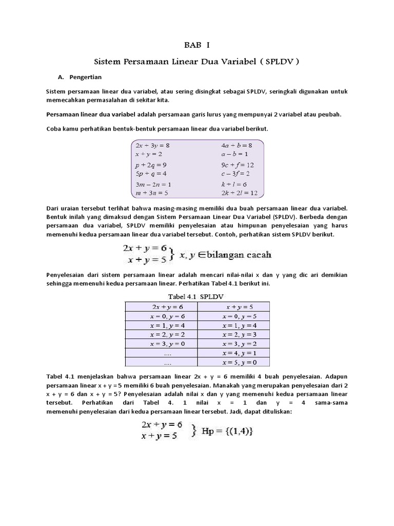 Makalah SISTEM PERSAMAAN LINIER DUA VARIABEL (SPLDV) | BELAJAR MATEMATIKA