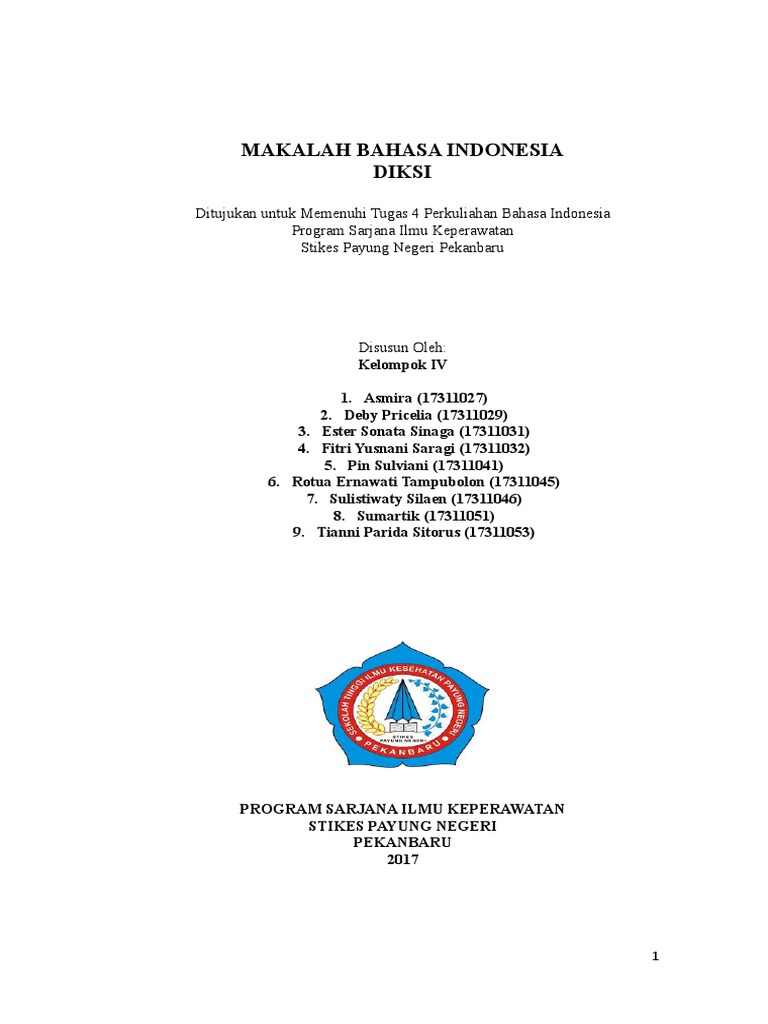 MAKALAH bindo fix.docx - MAKALAH BAHASA INDONESIA(DIKSI ATAU PILIHAN KATA Di Ajukan untuk Memenuhi Tugas Mata kuliah Bahasa Indonesia Kelompok 3 1 | Course Hero