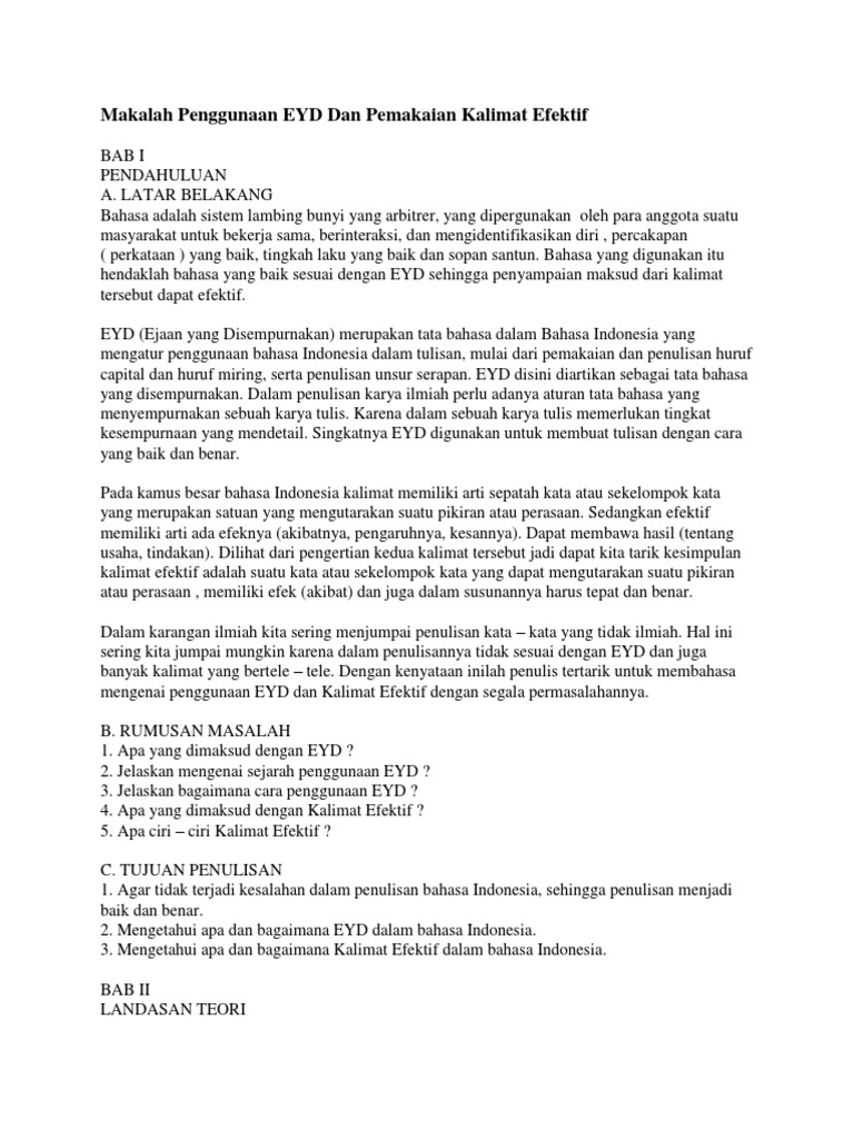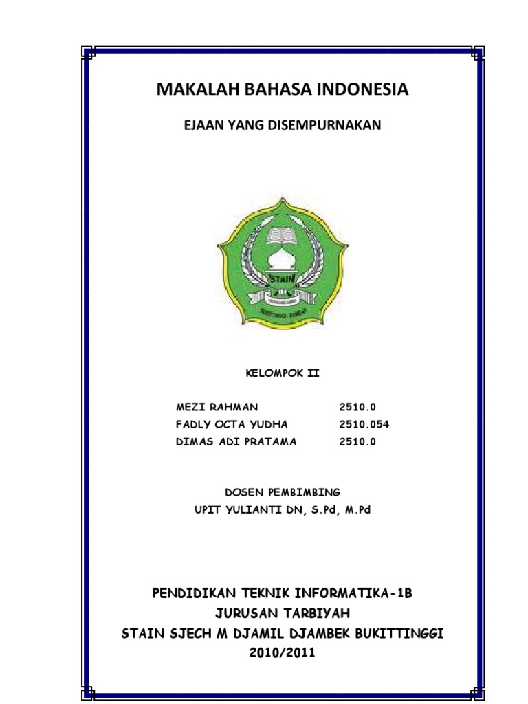 Contoh Makalah Bahasa Indonesia Ejaan Yang Disempurnakan