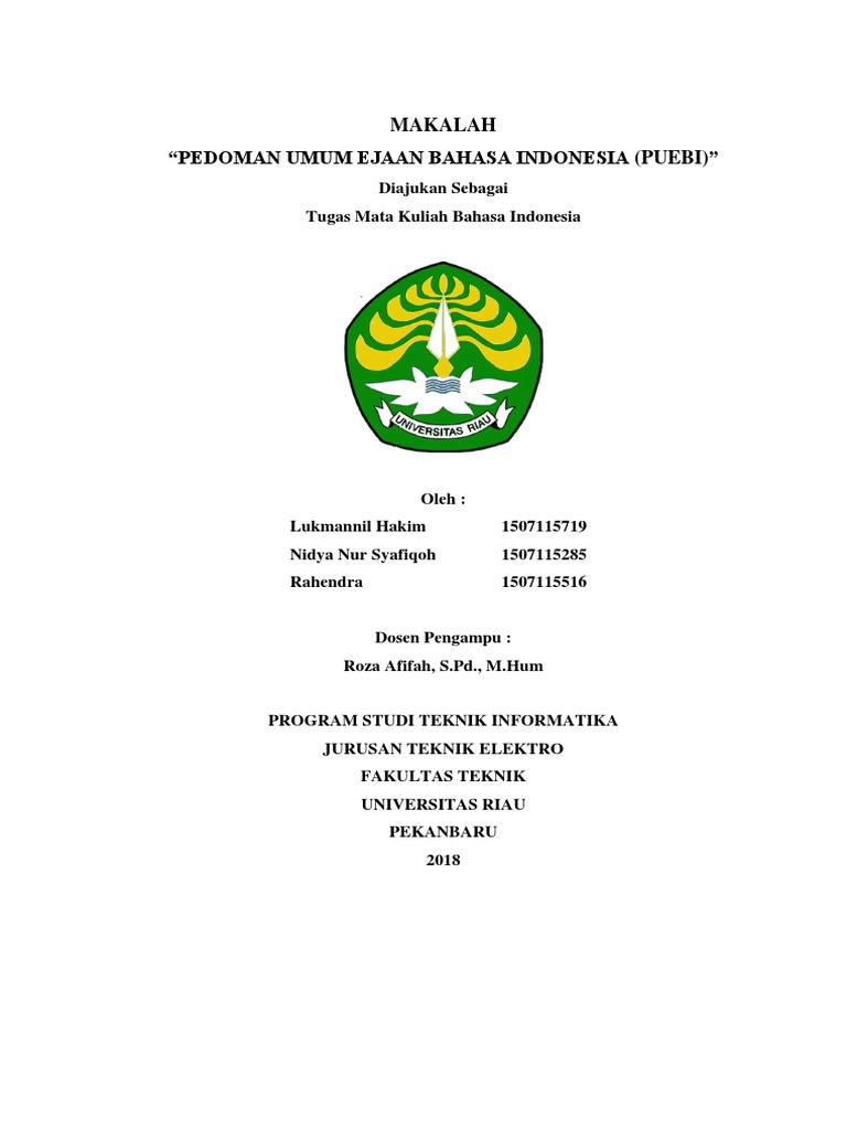 DOC) EJAAN MAKALAH Untuk memenuhi tugas matakuliah Bahasa Indonesia yang dibina oleh bapak Drs | Erniance Siregar - Academia.edu