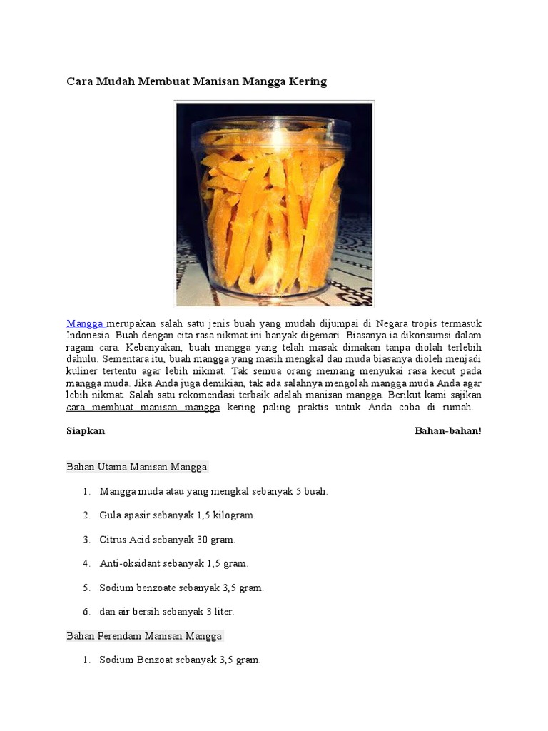 DOC) Laporan Biologi Pembuatan Manisan Mangga (Mangifera indica | ARIYA NANDA PUTRA ARIYA - Academia.edu