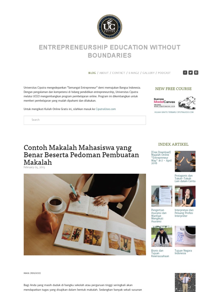 Contoh Makalah Mahasiswa Yang Benar Beserta Pedoman Pembuatan Makalah Universitas Ciputra Entrepreneurship Online