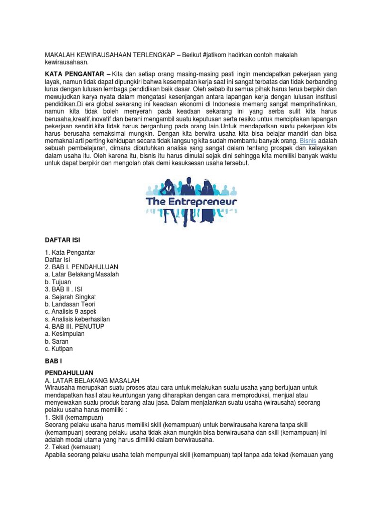 DOC) Contoh makalah kewirausahaan | Ircham Rizqita - Academia.edu