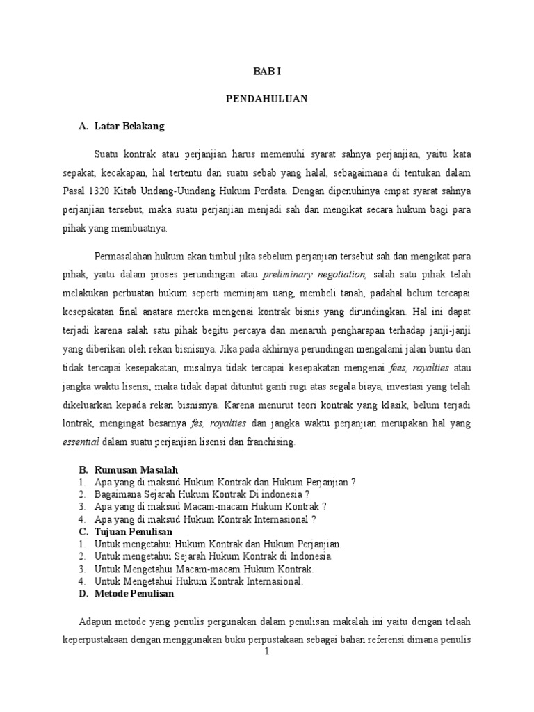 DOC) Makalah Hukum Bisnis Kontrak atau Perjanjian | Haekal Rais - Academia.edu