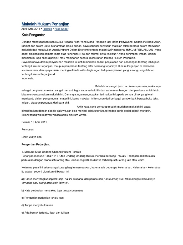 Contoh Makalah Hukum Perdata Tentang Perjanjian - ARasmi