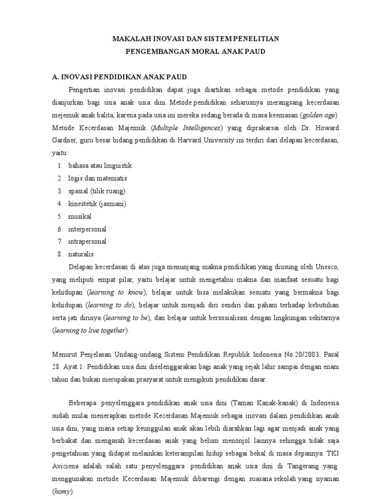 Contoh Makalah Inovasi Pembelajaran Paud - Modif N