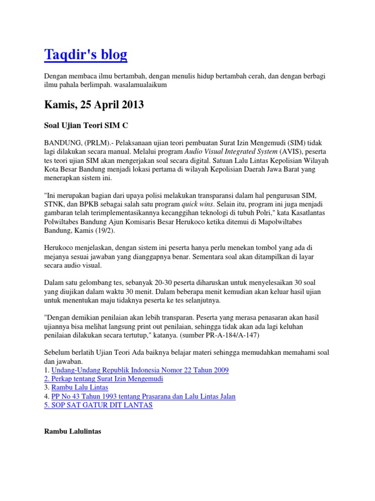 Soal Ujian Sim C Dan Jawaban 2014 - Guru Ilmu Sosial