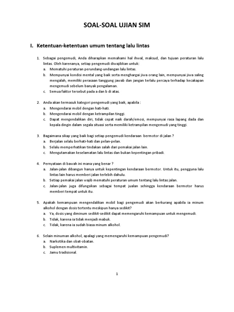 Soal Soal Ujian Sim C Dan Jawabannya - Peranti Guru