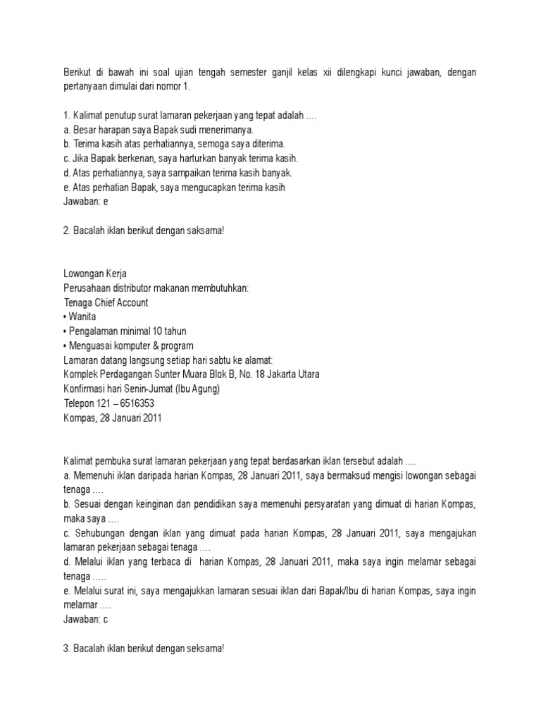 Contoh Soal Dan Jawaban Dokumen Kantor