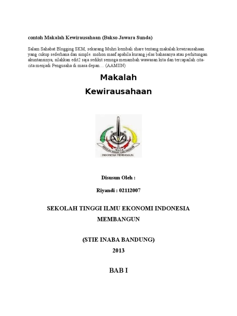Contoh Makalah Kewirausahaan Lengkap Format .docx Microsoft Word - CONTOH DOCS