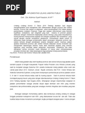 PDF) Studi Kasus Seleksi Terbuka Jabatan Eselon I dan II di KemenPANRB | syahril sangaji - Academia.edu