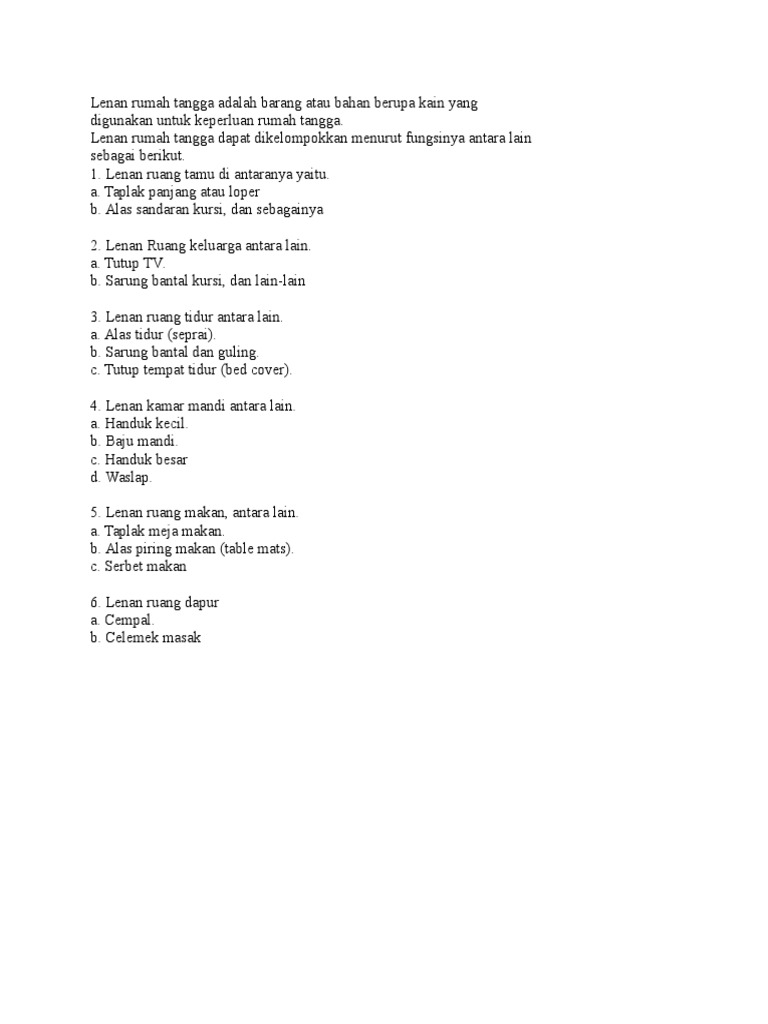PKK Lenan Rumah Tangga Adalah Barang Atau Bahan Berupa Kain Yang