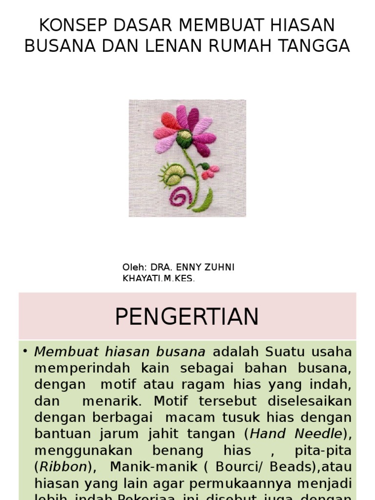 KONSEP DASAR MEMBUAT HIASAN BUSANA DAN LENAN RUMAH TANGGA - ppt download