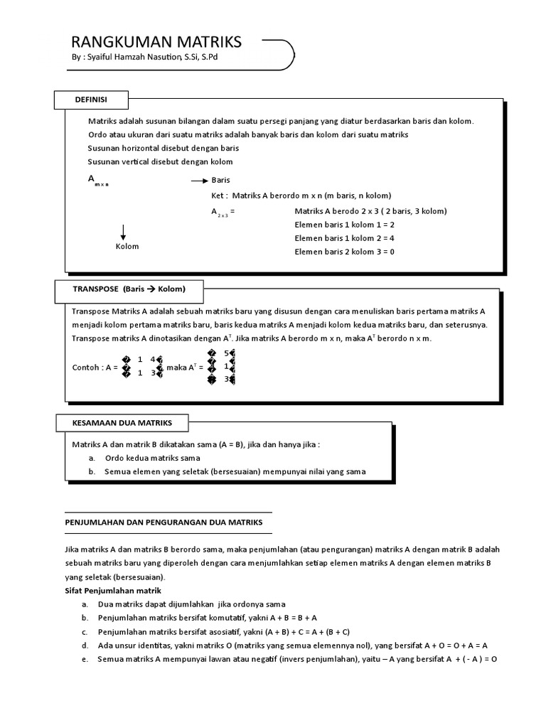 Operasi Matriks dan Sifat-Sifatnya - Profematika