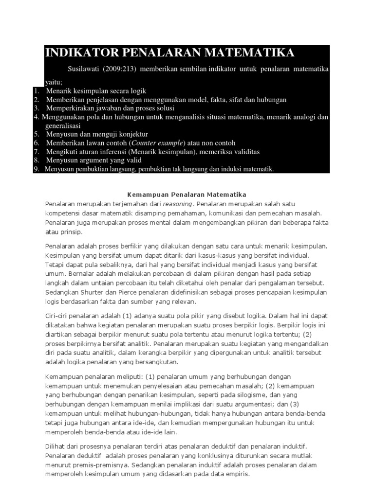 Best Makalah Penalaran Dan Pemecahan Masalah Matematika