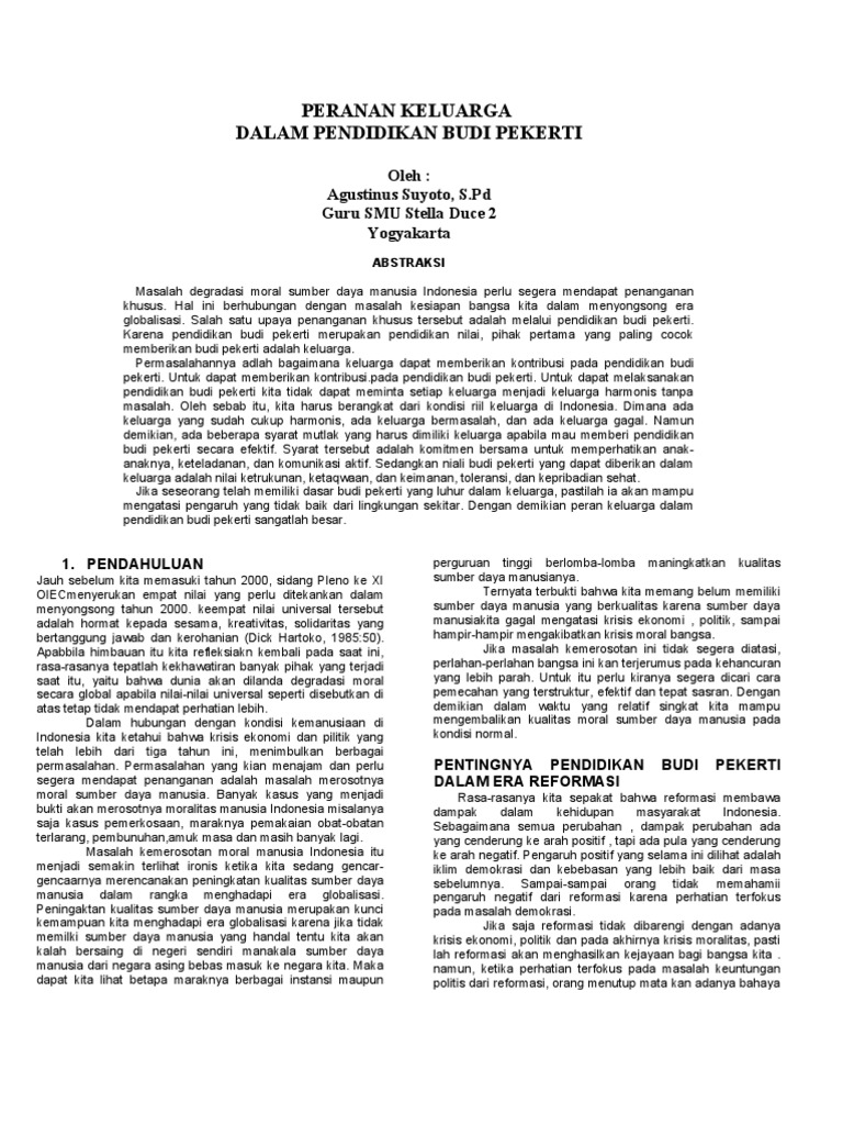 Contoh Makalah Pendidikan Budi Pekerti