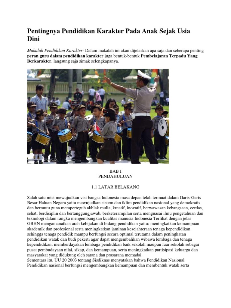 Contoh Makalah Indonesia Terlengkap: Contoh Makalah Pendidikan Karakter Anak Usia Dini