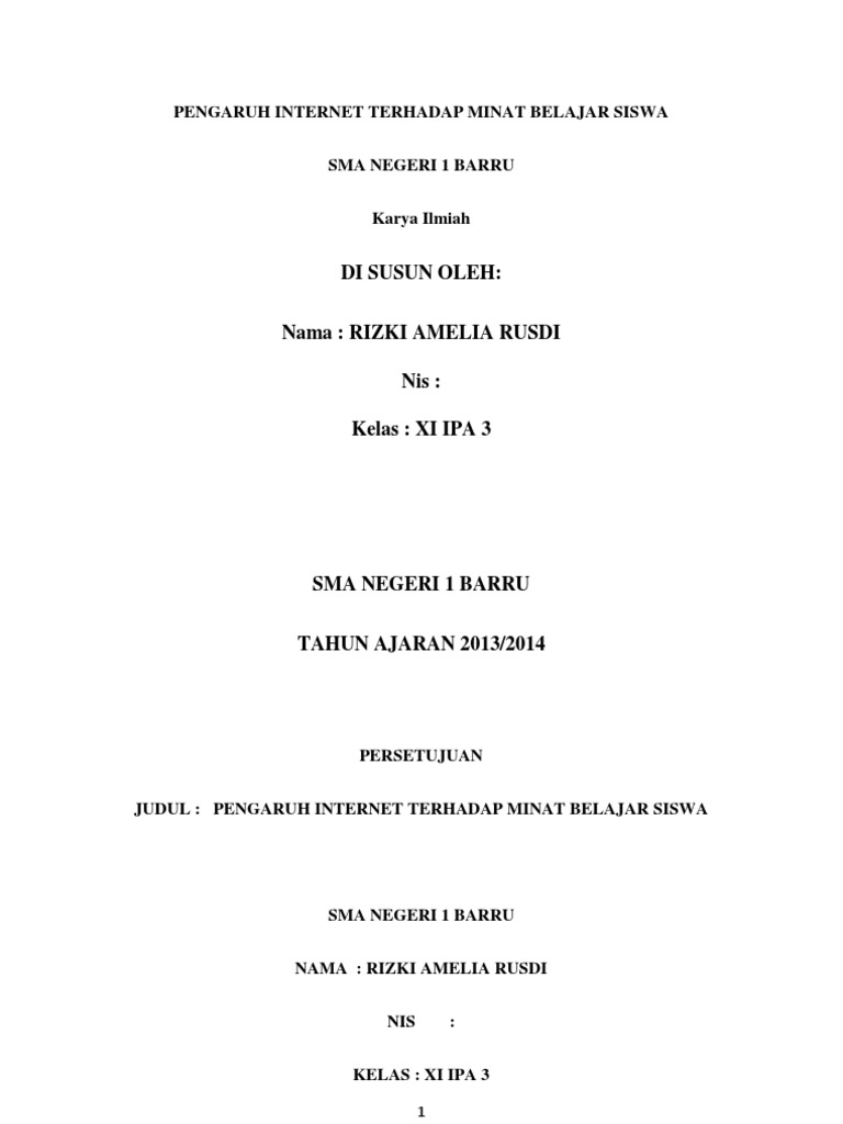 Contoh Karya Tulis Ilmia Tentang Internet Terhadap Para Pelajar 2019 | Kumpulan Contoh Surat dan Proposal