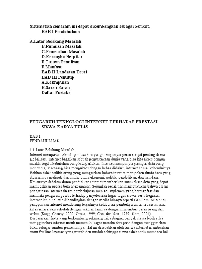 DOC) Contoh Karya Tulis Ilmiah Pengaruh Kemajuan Teknologi Komunikasi Terhadap Remaja | Dani Sihombing - Academia.edu
