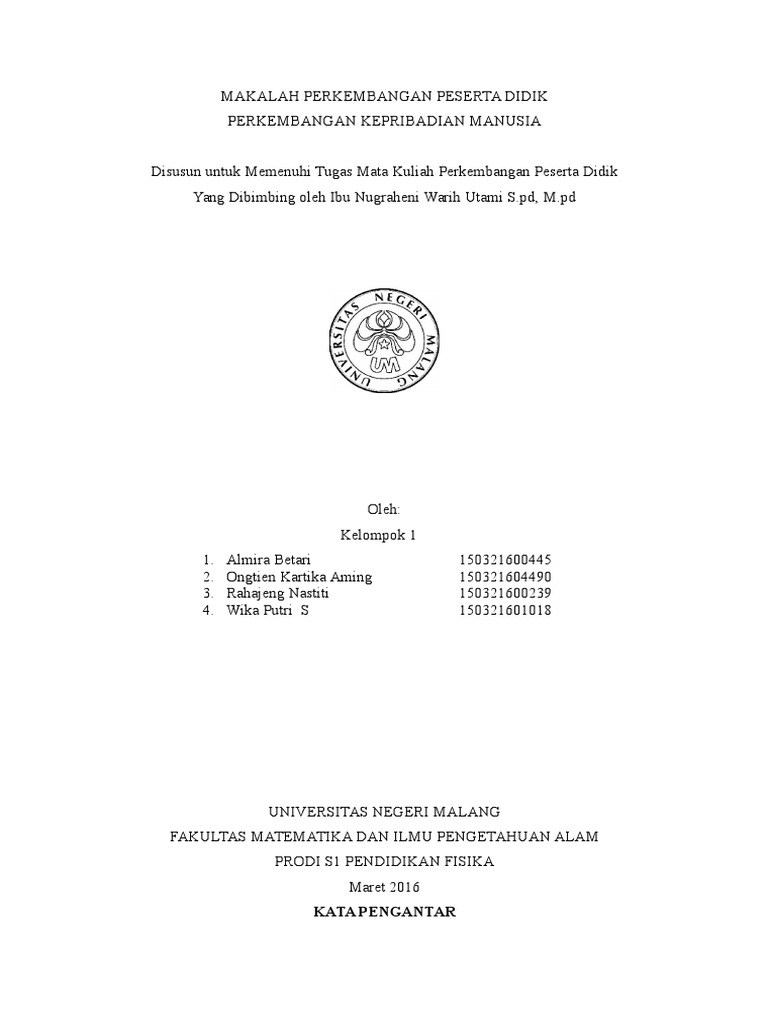 DOC) MAKALAH PERKEMBANGAN PESERTA DIDIK TENTANG PERKEMBANGAN KEPRIBADIAN | Raeha Nopiani - Academia.edu