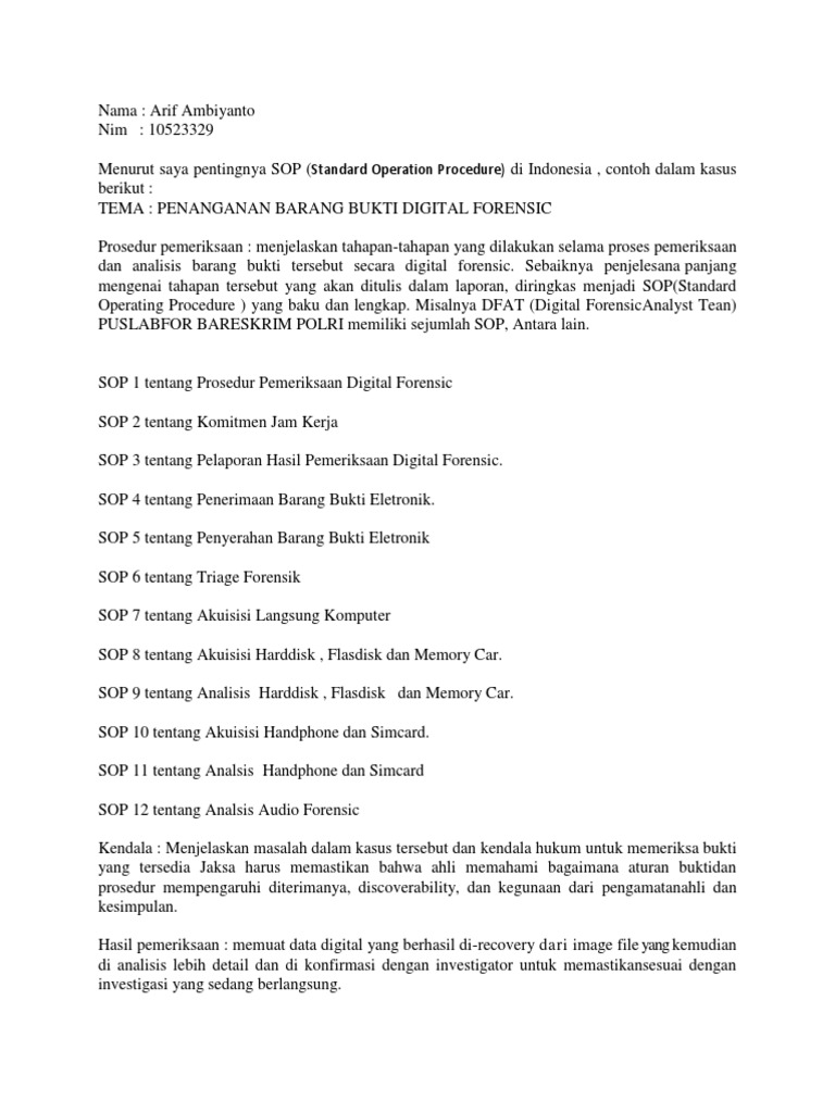 PDF) PENERAPAN SOP (STANDARD OPERATING PROCEDURES) UNTUK MENINGKATKAN KUALITAS KERJA PADA SUATU KANTOR APPLICATION OF SOP (STANDARD OPERATING PROCEDURES) TO INCREASE WORK QUALITY AT AN OFFICE | Siti Tarwiyah - Academia.edu