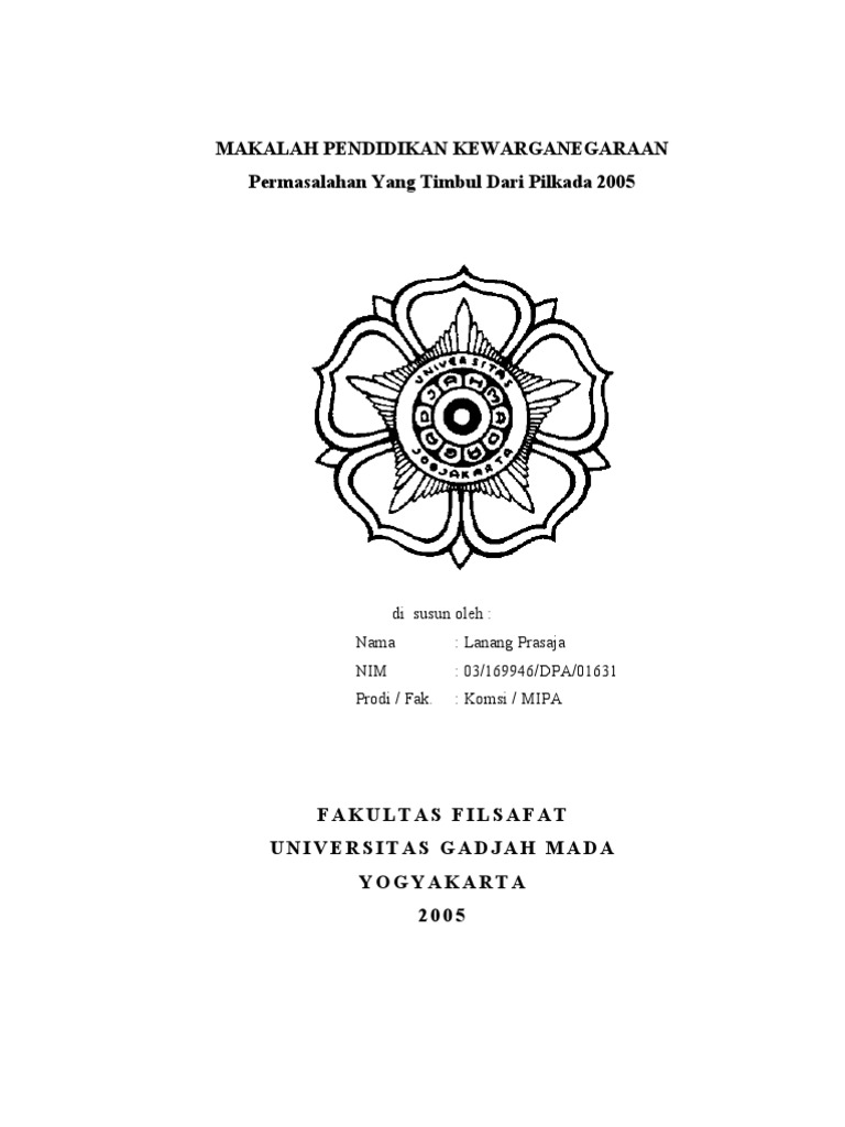 Makalah Pendidikan Kewarganegaraan Permasalahan Yang Timbul Dari Pilkada 2005 | Pertanyaan | Integritas