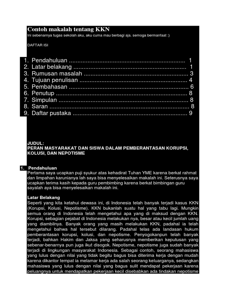 Contoh Makalah Tentang KKN