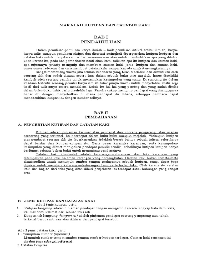 Contoh Makalah Yang Ada Catatan Kaki Dan Kutipan