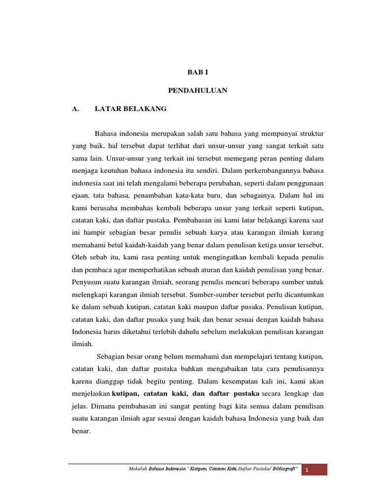 DOC) Makalah Bahasa Indonesia : Kutipan, Catatan Kaki, dan Daftar Pustaka | Oyii AC - Academia.edu