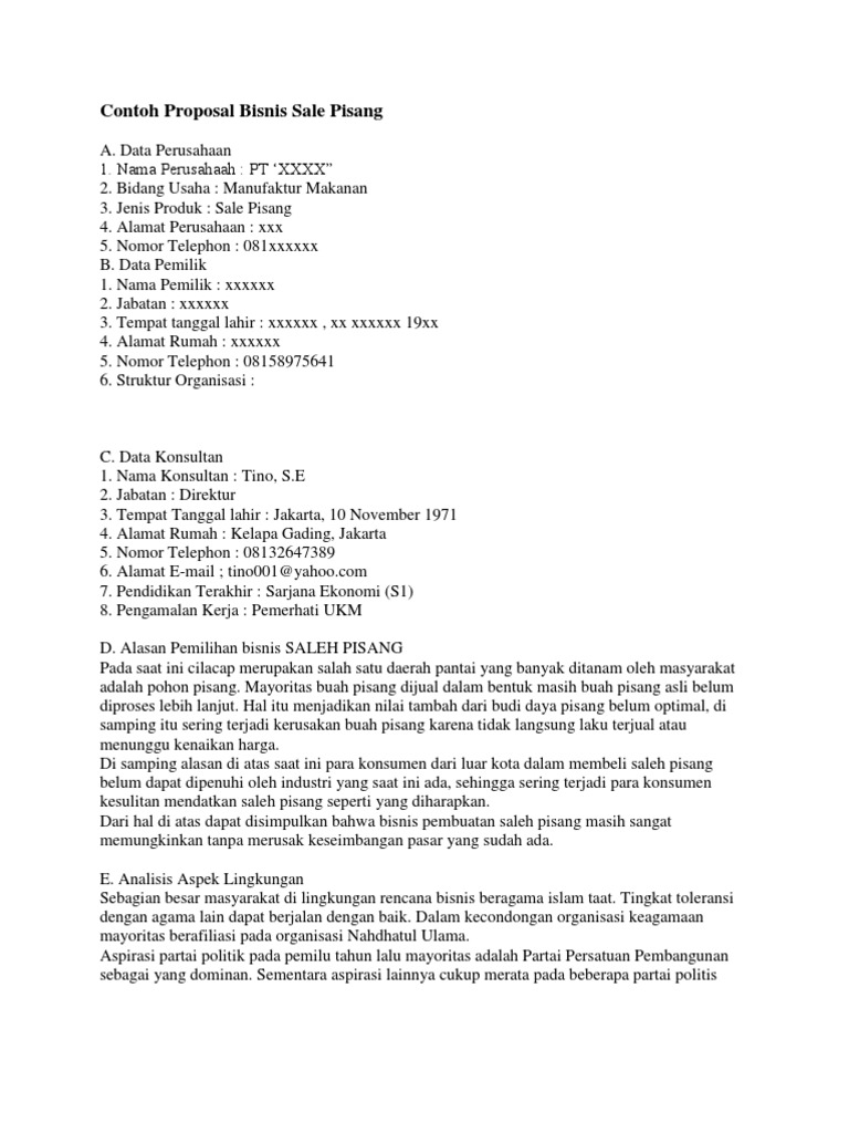 Contoh Proposal Bisnis Plan Dalam Ukm