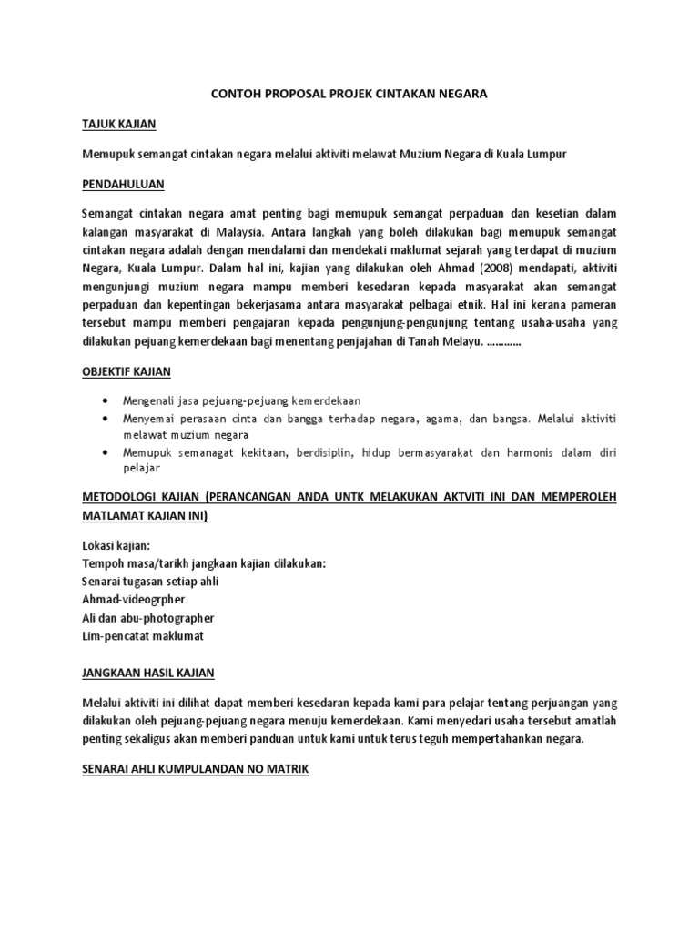 Proposal Projek Cintakan Negara
