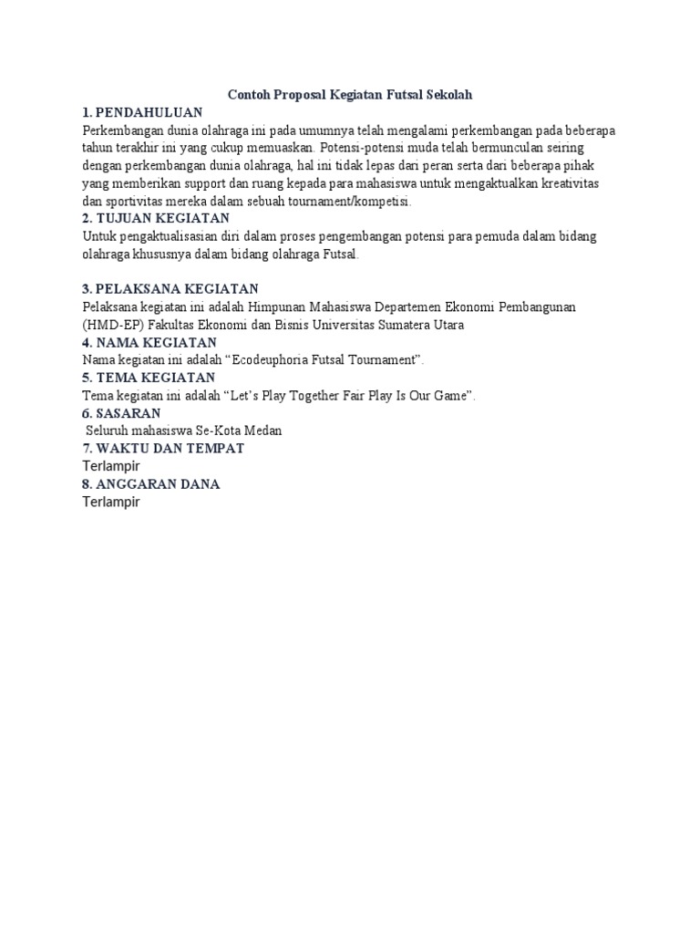 Proposal Kegiatan Futsal Antar Kelas | Riflan Prasetya - Academia.edu